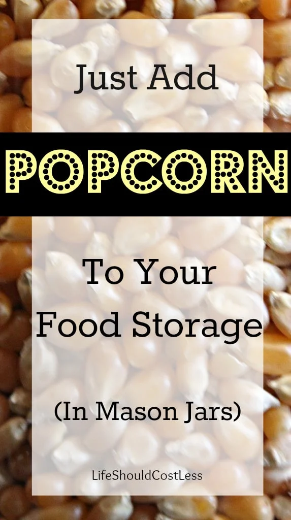 It has been one of my most favorite snacks since I was just a little girl. Especially when coupled with peanut m&m’s it’s so YUMMY! That being said, I decided long ago that it is a must-have for our food storage. Not just because I love it, but because buying it in bulk will save us a ton of money over time. I’m a huge fan of the bulk section at Winco Foods and I was able to get a 25 lb bag of yellow popcorn there for around $17. Which is great considering that the 5 lb container at Costco is $8+ (so that same amount of 25 lbs at Costco would be upwards of $40…yikes!).